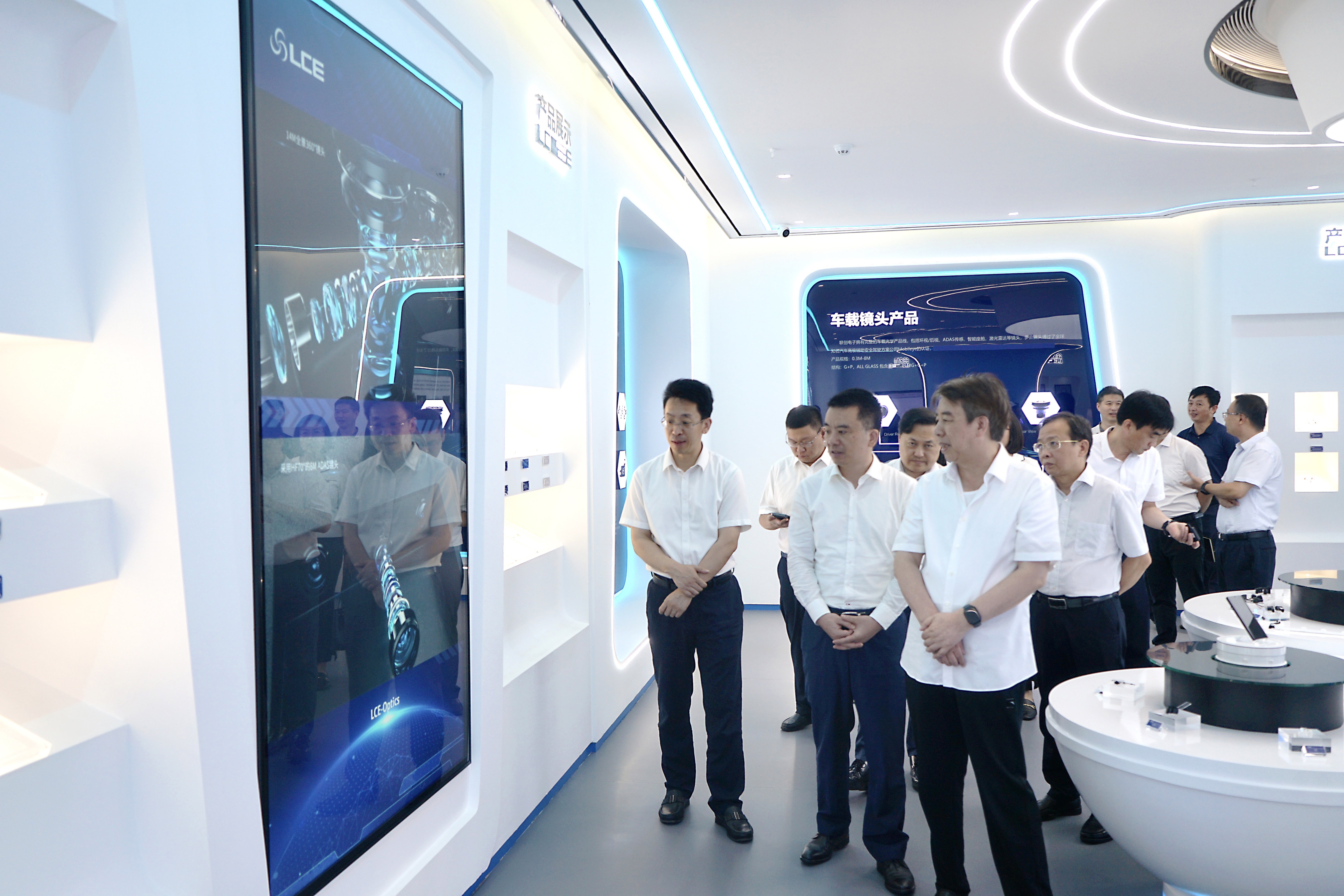 调研中,夏副省长参观了公司科技展厅,详细了解公司拥有自主专利技术的ADAS车载镜头与影像模组、显示屏等车载产品,实地考察公司满负荷运转中的镜头及镜头模组生产线,认真听取了公司领导关于“加大研发投入,在光学非球面玻璃镜片等方面形成自有的核心技术”“加快技术改造,扩大产能,抢占新能源汽车电子万亿级蓝海市场”等方面的情况汇报,并亲切回应公司领导提出的相关意见和建议,同时对公司在汽车电子细分领域的优势和行业地位给予了肯定。