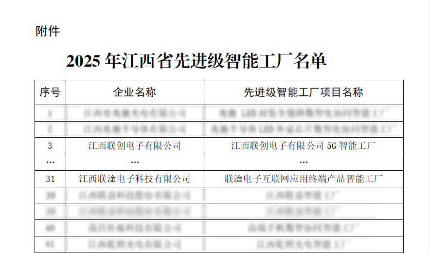 近日,江西省工业和信息化厅正式公布2025年江西省“先进级智能工厂”名单,186家企业入选。其中江西乐鱼在线(中国)有限公司、江西联淦电子科技有限公司2家乐鱼在线(中国)系企业名列榜单。这标志着公司在智能制造领域的创新成果再次获得政府权威认可。